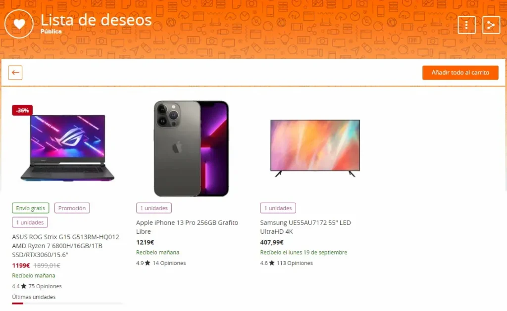 Pccomponentes: Lista de deseados